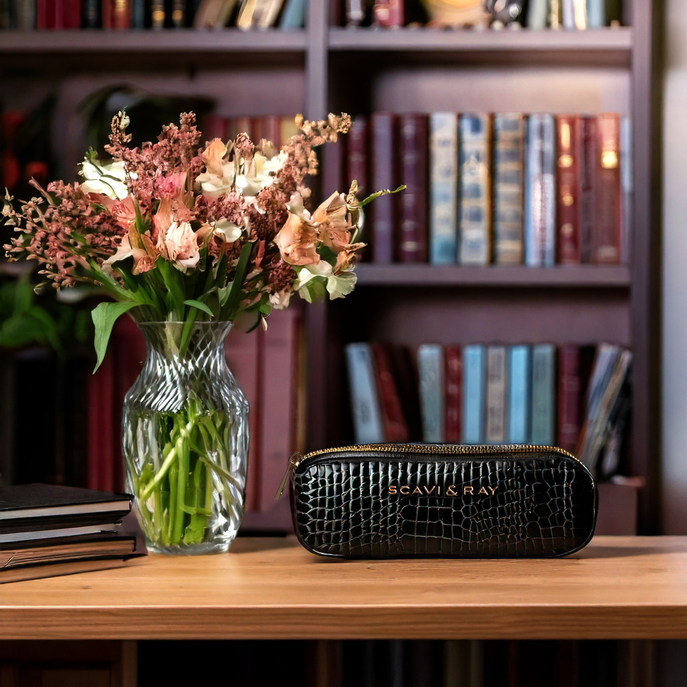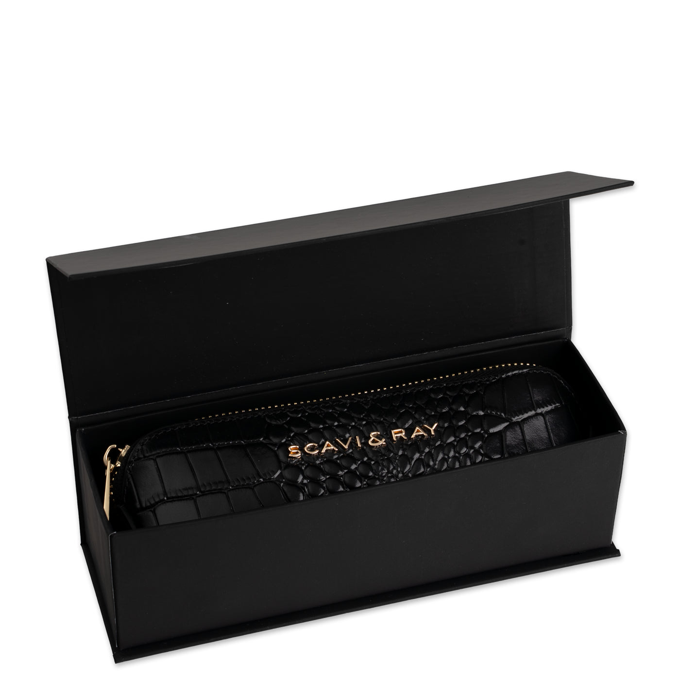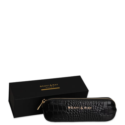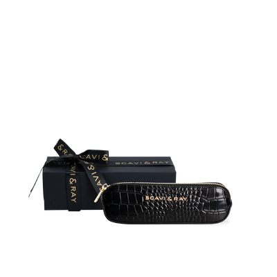 Der goldfarbene Reißverschluss setzt einen leisen Akzent und trägt das SCAVI & RAY Branding in zurückhaltender Klarheit. Im Inneren finden Stifte, kleine Pflegeprodukte oder andere tägliche Begleiter ihren Platz – geschützt und gut sortiert. Durch seine kompakte Form lässt sich das Etui mühelos in jeder Tasche verstauen und begleitet dich vom Schreibtisch bis zum Abendessen. Ein kleines, praktisches Accessoire, das deinem Alltag Struktur und einen Hauch von Eleganz schenkt.