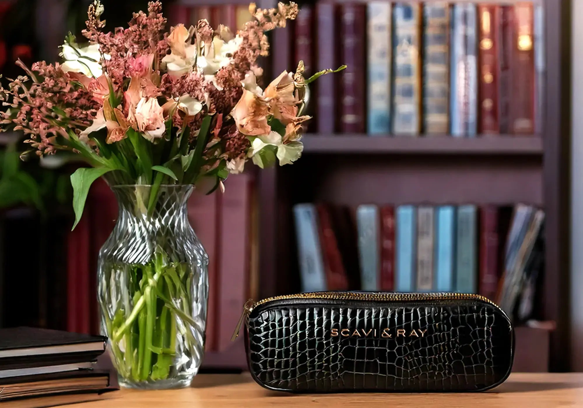 Der goldfarbene Reißverschluss setzt einen leisen Akzent und trägt das SCAVI & RAY Branding in zurückhaltender Klarheit. Im Inneren finden Stifte, kleine Pflegeprodukte oder andere tägliche Begleiter ihren Platz – geschützt und gut sortiert. Durch seine kompakte Form lässt sich das Etui mühelos in jeder Tasche verstauen und begleitet dich vom Schreibtisch bis zum Abendessen. Ein kleines, praktisches Accessoire, das deinem Alltag Struktur und einen Hauch von Eleganz schenkt.