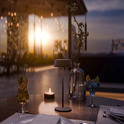 Wenn ein Raum langsam dunkler wird und nur ein feiner Lichtpunkt bleibt, entsteht eine Ruhe, die man gern festhält. Die LUCENT CROWN VENEZIA BLACK ist für genau diese Momente gemacht. Ihre kompaktere Silhouette, das matte Schwarz und das leichte Gewicht verleihen ihr eine stille Eleganz, die sich mühelos in jede Umgebung einfügt – auf dem Tisch, im Schlafzimmer oder draußen auf der Terrasse.
